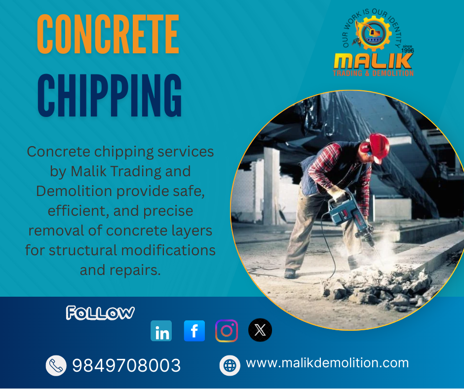 Concrete chipping services by Malik Trading and Demolition provide safe, efficient, and precise removal of concrete layers for structural modifications and repairs.