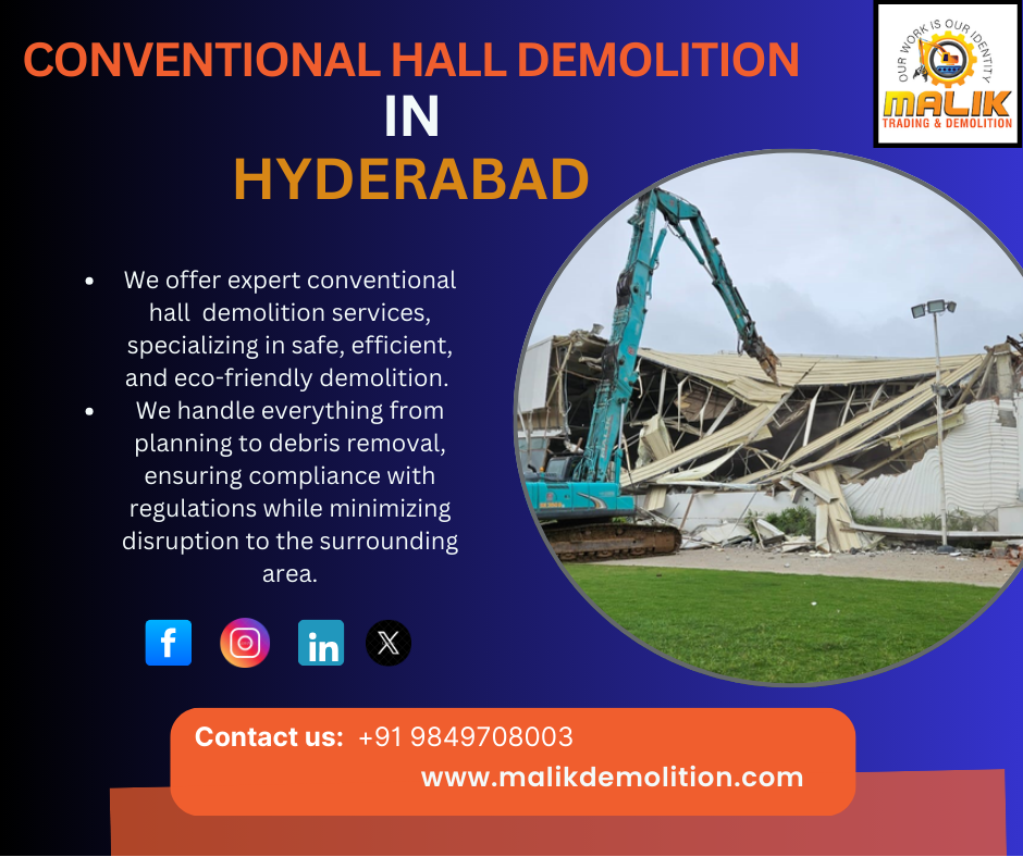 We offer expert conventional hall demolition services, specializing in safe, efficient, and eco-friendly demolition. We handle everything from planning to debris removal, ensuring compliance with regulations while minimizing disruption to the surrounding area.