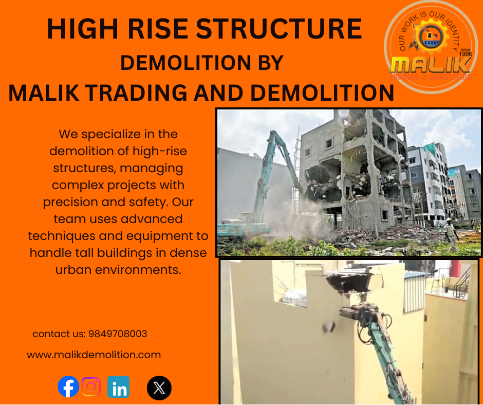 We specialize in the demolition of high-rise structures, managing complex projects with precision and safety. Our team uses advanced techniques and equipment to handle tall buildings in dense urban environments.