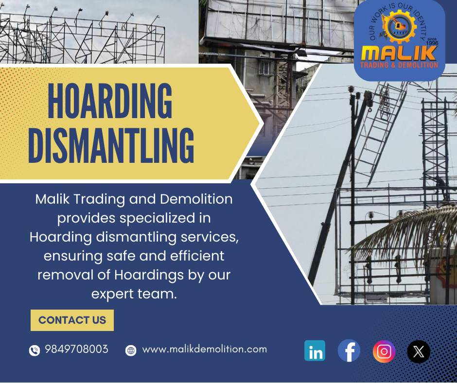 Malik Trading and Demolition provides specialized in Hoarding dismantling services, ensuring safe and efficient removal of Hoardings by our expert team.