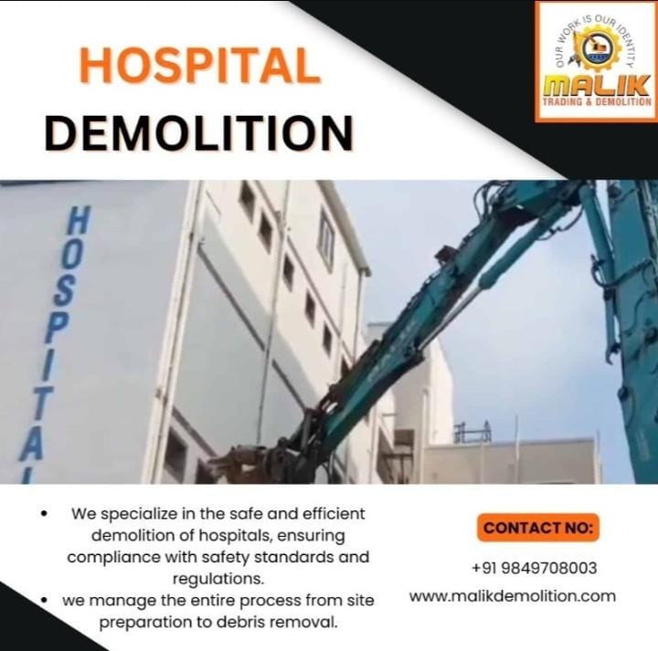 Precision. Safety. Trust. Malik Trading delivers professional hospital demolition services with advanced equipment and expert crews. We ensure controlled dismantling, strict safety compliance, and zero disruption to surrounding zones. From structural breakdown to debris removal — we handle it all with care. Choose reliability. Choose Malik Trading. Your demolition needs, expertly executed.