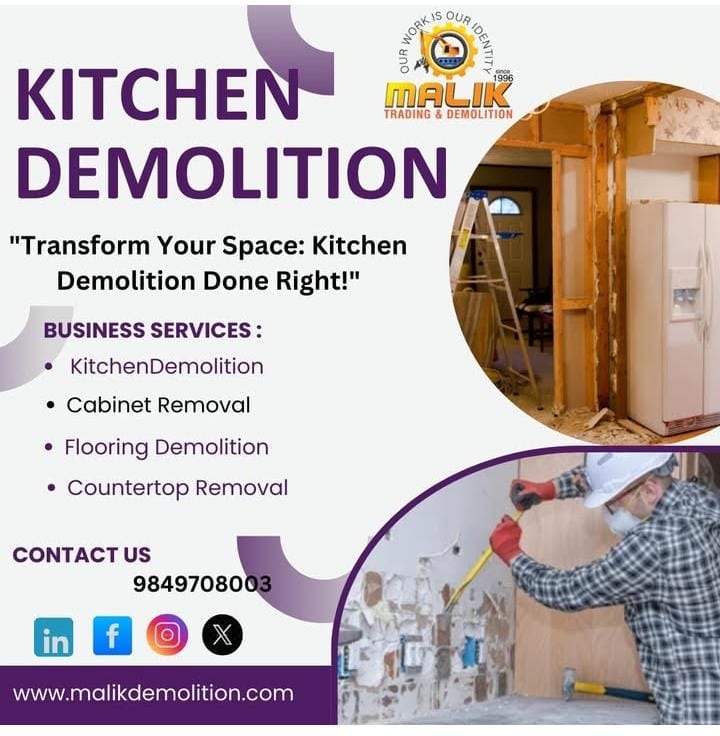 Our kitchen demolition service is designed to prepare your space for a flawless renovation. From safe removal of cabinets, countertops, tiles, and fixtures to careful handling of plumbing and electrical points, we ensure a clean, efficient, and damage-free process. With attention to safety, precision, and minimal disruption, we help transform your kitchen smoothly from old to new.