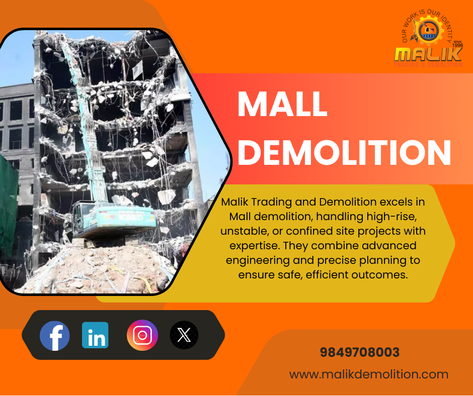 Malik Trading and Demolition excels in Mall demolition, handling high-rise, unstable, or confined site projects with expertise. They combine advanced engineering and precise planning to ensure safe, efficient outcomes.