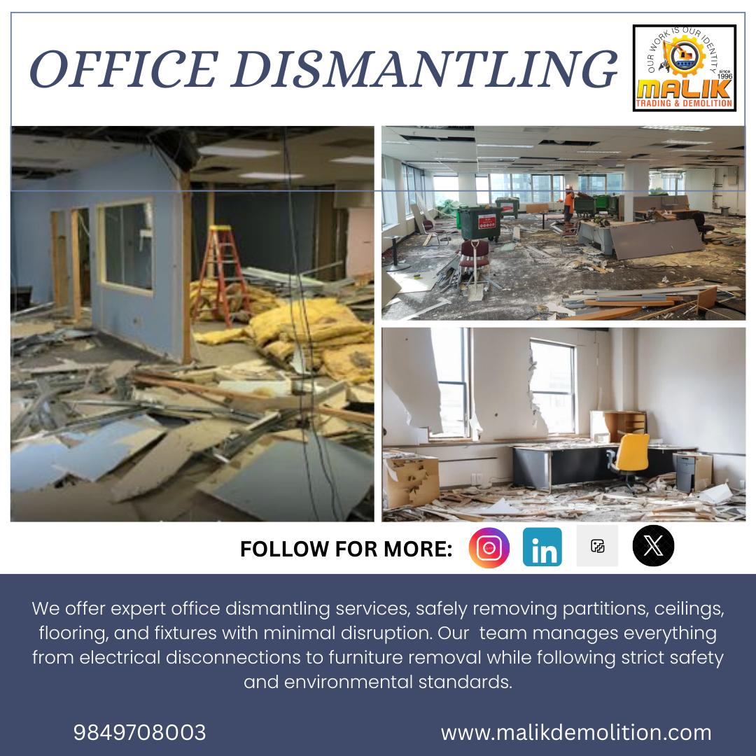 We offer expert office dismantling services, safely removing partitions, ceilings, flooring, and fixtures with minimal disruption. Our team manages everything from electrical disconnections to furniture removal while following strict safety and environmental standards.