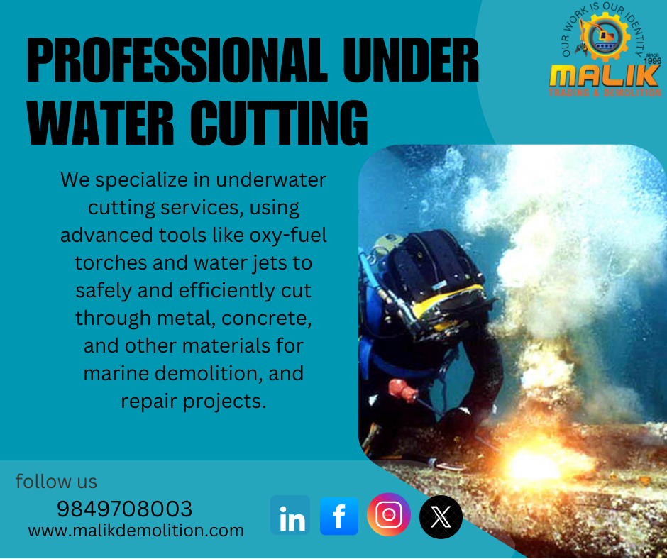 We specialize in underwater cutting services, using advanced tools like oxy-fuel torches and water jets to safely and efficiently cut through metal, concrete, and other materials for marine demolition, and repair projects.