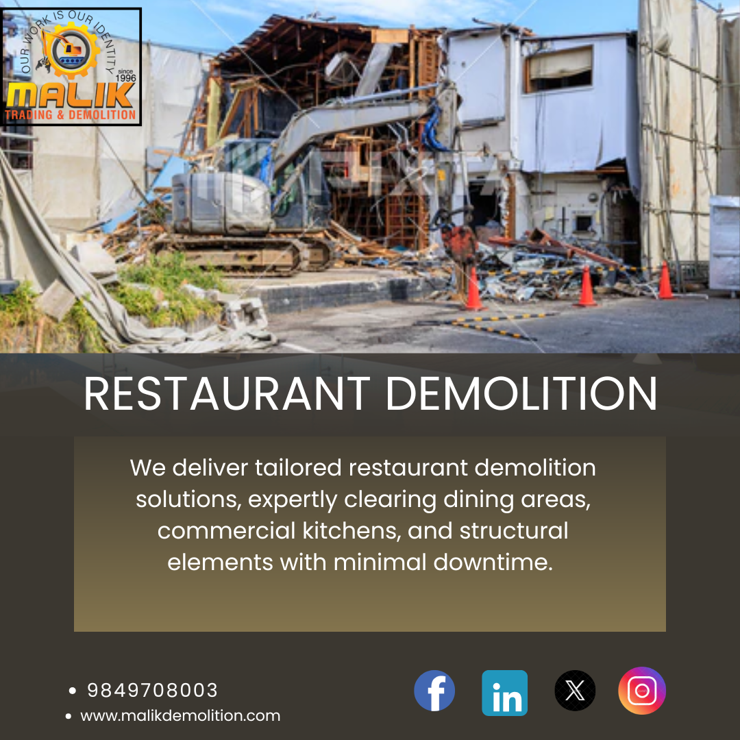We deliver tailored restaurant demolition solutions, expertly clearing dining areas, commercial kitchens, and structural elements with minimal downtime.
