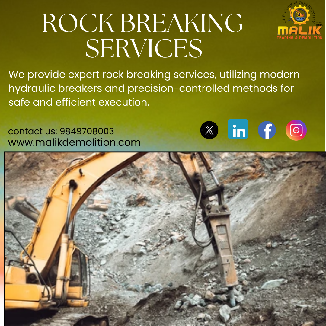 We provide expert rock breaking services, utilizing modern hydraulic breakers and precision-controlled methods for safe and efficient execution.