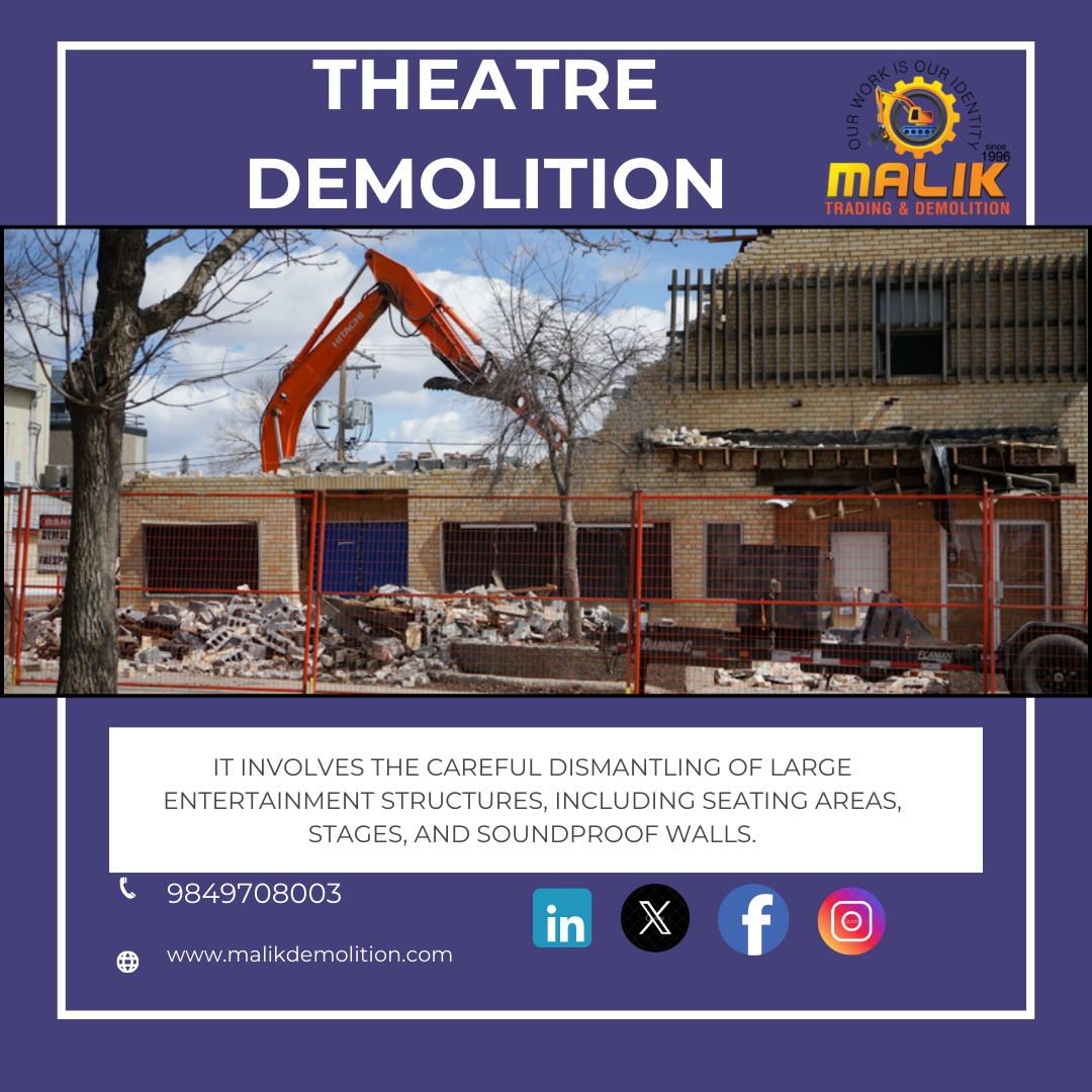 It involves the careful dismantling of large entertainment structures, including seating areas, stages, and soundproof walls.
