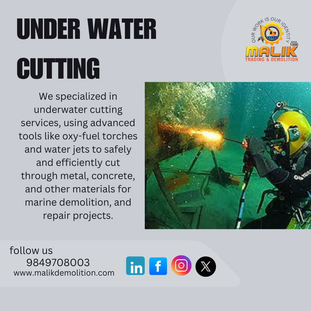 We specialized in underwater cutting services, using advanced tools like oxy-fuel torches and water jets to safely and efficiently cut through metal, concrete, and other materials for marine demolition, and repair projects.